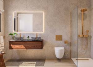 Das Außendesign der Wohnungen ist darauf ausgelegt, das mediterrane Klima optimal zu nutzen. Die Immobilien verfügen über private Terrassen, die sich perfekt zum Entspannen im Freien und zum Genießen der Aussicht eignen. Darüber hinaus beinhalten einige Typologien private Gärten, die zusätzlichen Raum für Outdoor-Aktivitäten oder die Schaffung einer persönlichen grünen Oase bieten. Die in einigen Einheiten verfügbaren Solariums ermöglichen es, die Sonne das ganze Jahr über optimal zu nutzen. Die Nähe zum Meer, nur 400 Meter entfernt, verleiht einen besonderen Reiz, da Küstenspaziergänge und Wassersportaktivitäten leicht zugänglich sind.