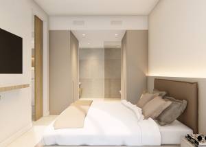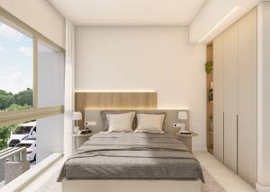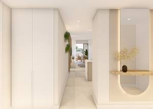 Das Innere der Wohnungen ist mit einem Fokus auf Funktionalität und Komfort gestaltet. Die Böden aus Feinsteinzeug verleihen einen Hauch von Eleganz und sind pflegeleicht. Die Wohnungen sind mit Klimaanlage ausgestattet, die das ganze Jahr über ein angenehmes Ambiente garantiert. Elektrische Rollläden und die Video-Gegensprechanlage bieten zusätzlichen Komfort und Sicherheit. Die Küche, ausgestattet mit modernen Geräten, integriert sich perfekt in den Raum und erleichtert den Alltag. Einbauschränke in den Schlafzimmern bieten effizienten und geordneten Stauraum.