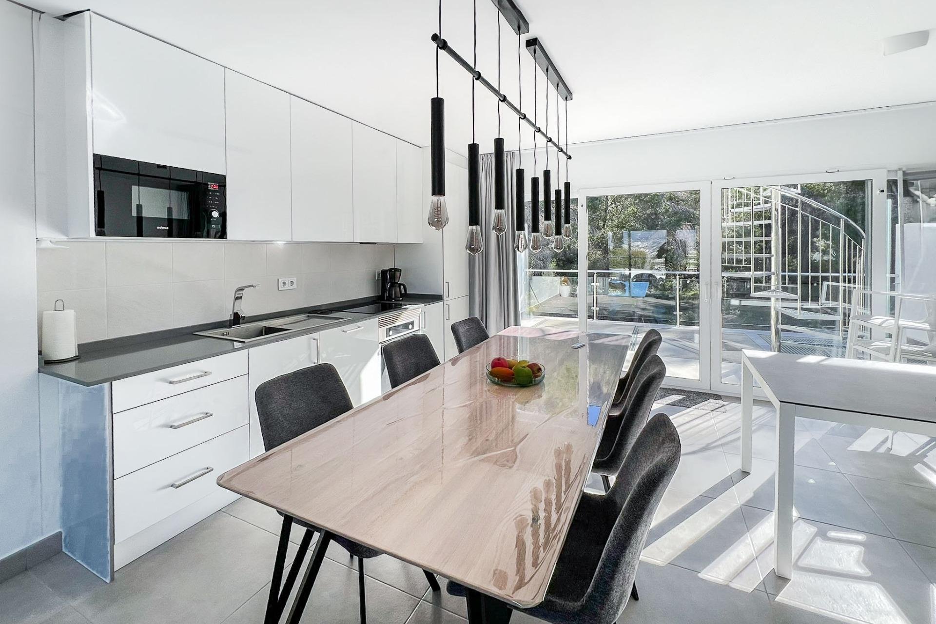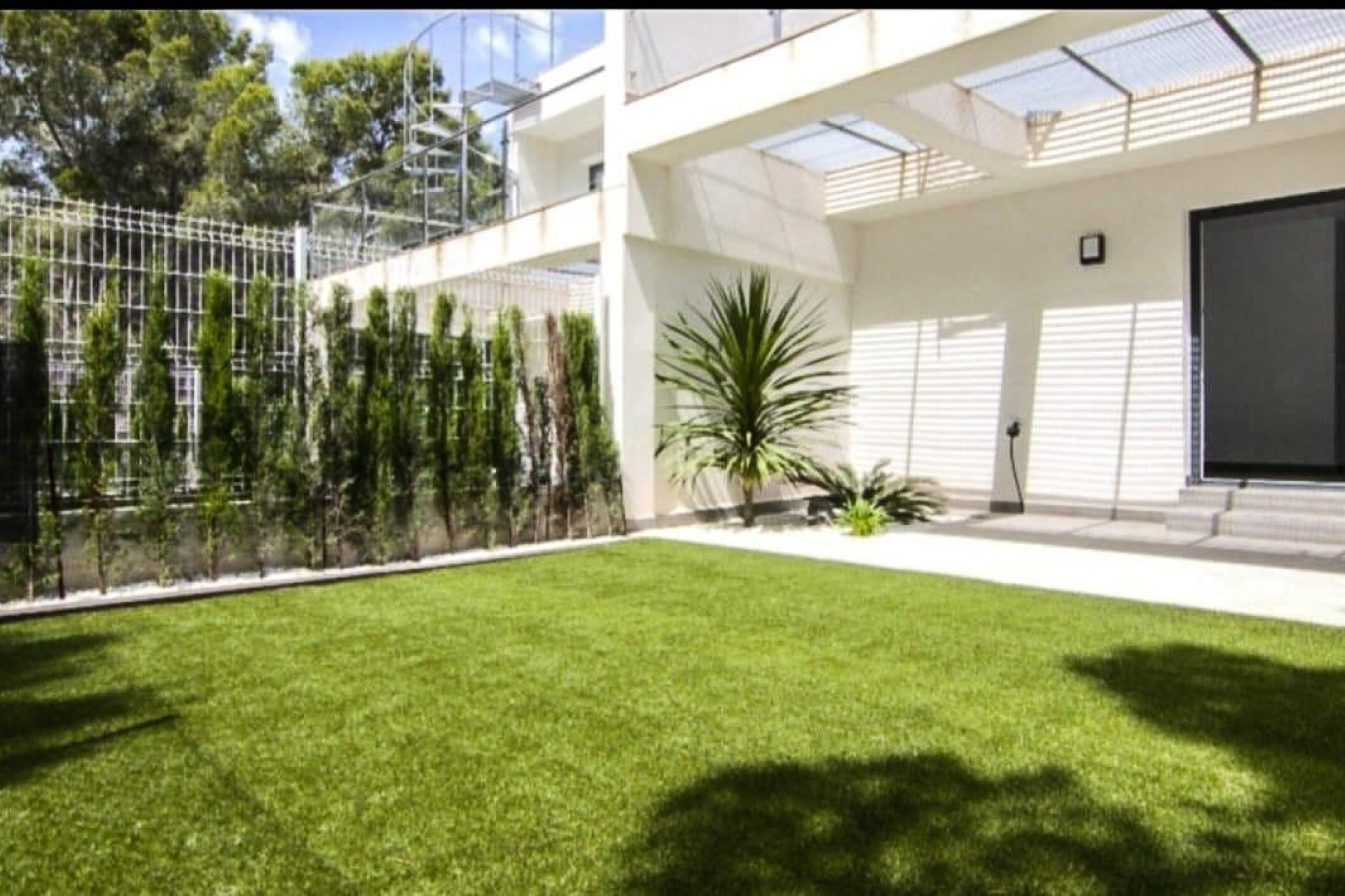 Entdecken Sie dieses beeindruckende neu gebaute Reihenhaus, das sich in der begehrten Gegend von Albir befindet. Mit einem außergewöhnlichen Layout, das sich über drei Etagen erstreckt, und einem spektakulären Solarium, von dem aus Sie die Aussicht auf die Berge sowie die Bucht von Albir und Altea genießen können. Im Erdgeschoss befindet sich eine private Garage sowie ein Hauswirtschaftsraum und ein Badezimmer; während sich im ersten Stock zwei gemütliche Schlafzimmer befinden, von denen eines mit einem eigenen Ankleideraum ausgestattet ist und beide mit eigenem Bad. Die zweite Etage bietet ein geräumiges Wohn-Esszimmer, das mit einer modernen offenen Küche verbunden ist, sowie zwei Terrassen, die ideal sind, um das mediterrane Klima im Freien zu genießen, und ein Gäste-WC. Der private Aufzug bietet direkten Zugang zwischen den verschiedenen Ebenen und erleichtert das Bewegen im gesamten Haus. Ausgestattet mit individuellen Split-Klimaanlagen und nachhaltigen Installationen dank seiner Solarpanels, garantiert dieses Reihenhaus das ganze Jahr über Komfort, ohne Ihr wirtschaftliches oder ökologisches Wohlbefinden zu vernachlässigen. Ergänzen Sie Ihre Sommertage, indem Sie die Gemeinschaftsräume nutzen, zu denen ein Gemeinschaftspool gehört, der perfekt ist, um sich unter der warmen spanischen Sonne zu entspannen.