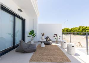 The exteriors of these townhouses in Rafal have been designed to offer an outdoor living space that complements the interiors of the homes. Each property features a private terrace, ideal for enjoying moments of relaxation or hosting outdoor family gatherings. Additionally, the homes include a garage, providing convenience and security for vehicle parking. The exterior design harmoniously integrates with the surroundings, offering an attractive and functional space that invites enjoyment of the Mediterranean climate year-round. The community garden areas add a touch of greenery and freshness to the complex, creating a serene and pleasant environment for all residents.