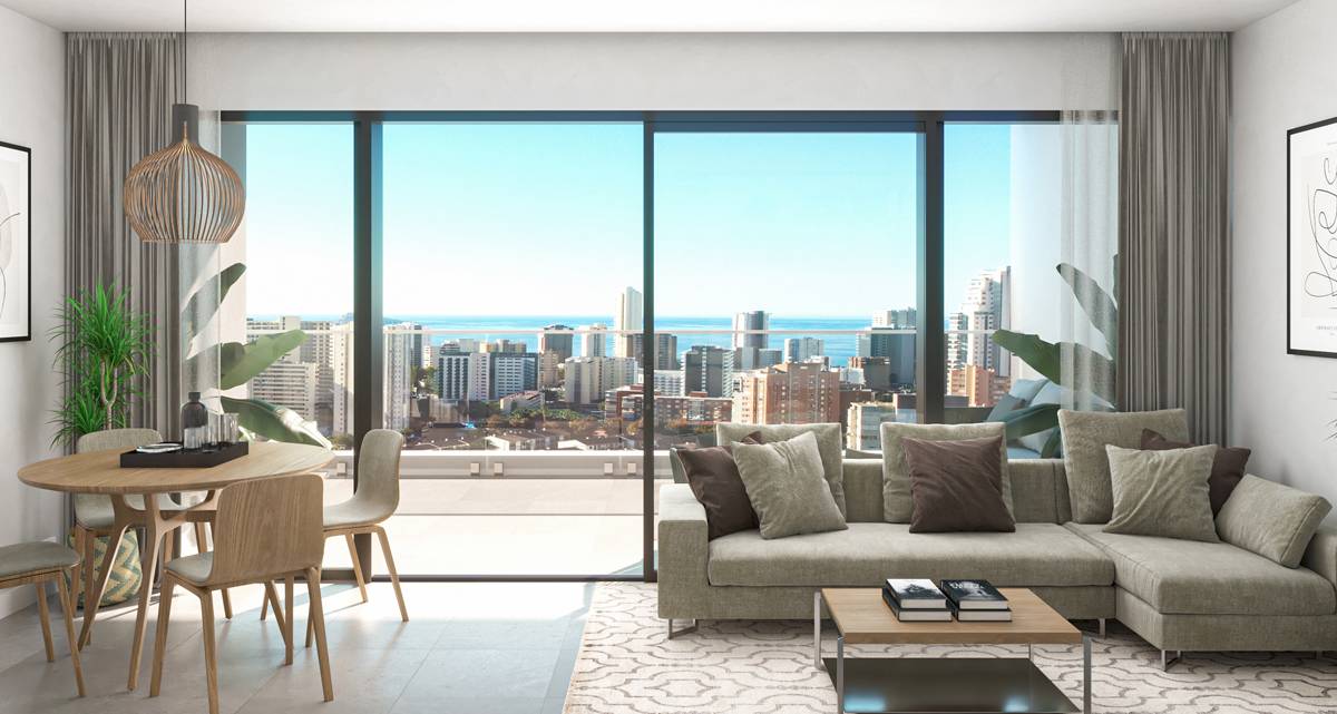 Located in the vibrant city of Benidorm, this exclusive residential complex offers a selection of 15 properties, including Apartments and Penthouses. Designed for those seeking a home with sea views, each unit is situated just 1 km from the coast, allowing enjoyment of the sea breeze and the relaxing sound of the waves. The properties are equipped with modern technology, including video intercom and high-quality appliances, ensuring comfort and security in every corner. Porcelain tile floors add a touch of elegance and durability, ideal for the Mediterranean lifestyle.