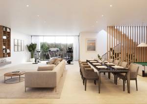 The interior of these independent homes in Polop is designed to offer comfort and modernity. Layout options include homes with 2, 3, or 4 bedrooms and 2 or 3 bathrooms, adapting to various family needs. Finishes include ceramic floors that provide a contemporary touch and easy maintenance. The homes are equipped with air conditioning to ensure thermal comfort throughout the year. Electric shutters and a video intercom add an additional level of convenience and security. The kitchen is equipped with modern appliances, and built-in wardrobes offer efficient storage. Additionally, each home has a private garage, providing a secure parking space.
