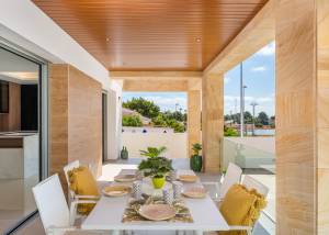 The exterior of these homes is a true oasis of relaxation. Each property features a private garden, perfect for enjoying the Mediterranean climate. The presence of a private pool adds a touch of luxury, allowing for a refreshing dip on the hottest days. Additionally, the terraces and solarium offer additional outdoor leisure spaces, ideal for family gatherings or simply enjoying a moment of tranquility. The pergola provides shade and a cozy spot to rest during the intense sun hours.