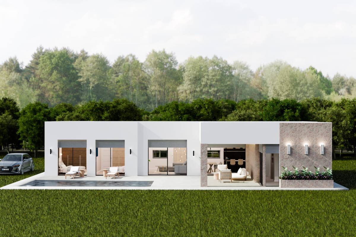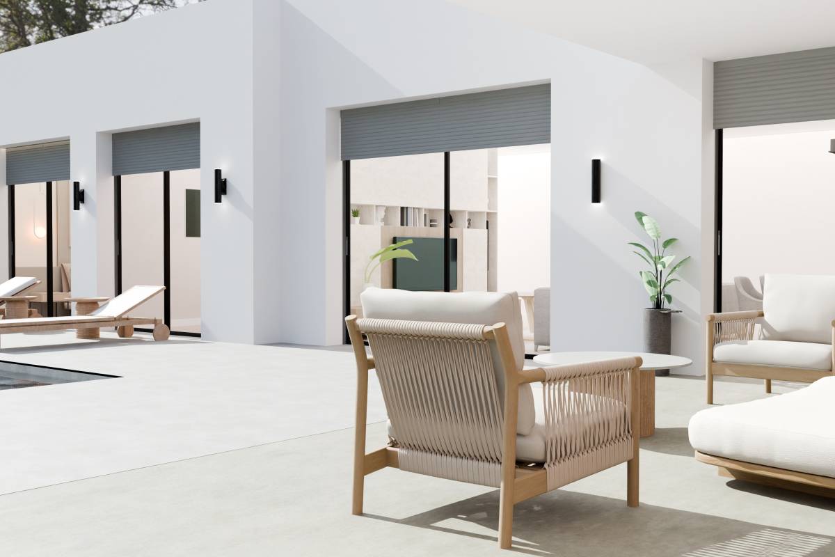 The interiors of these detached homes are designed with comfort and functionality in mind. The porcelain tile floors add a modern and elegant touch to the spaces. The homes are equipped with appliances, making daily life easier from day one. Built-in wardrobes offer efficient storage solutions, while electric blinds add convenience and security. The pre-installation of air conditioning ensures that the indoor climate is always suitable, adapting to the needs of each season. Additionally, each home includes a garage, providing a secure parking space.