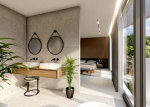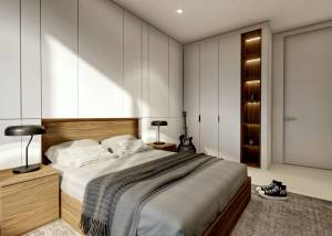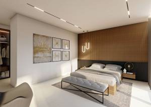 The interior of the villa is carefully designed to offer maximum comfort and functionality. It consists of four bedrooms, each with its own bathroom, ensuring privacy and convenience for all residents. Built-in wardrobes provide ample storage space, maintaining the home's order and aesthetics. The kitchen is equipped with modern appliances, facilitating daily tasks and adding a touch of sophistication. The ceramic flooring is not only elegant but also easy to maintain, ideal for an active lifestyle. The villa also includes a garage, providing security and convenience for vehicle parking.