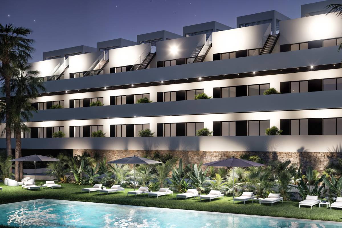 The exteriors of this residential complex have been designed to complement the natural surroundings of Golf Bahía. The properties feature private terraces, perfect for enjoying the Mediterranean climate and panoramic sea views. The penthouses also have solariums, offering additional space for relaxation and outdoor entertainment. The modern and elegant architecture harmoniously integrates with the landscape, creating a welcoming and sophisticated environment.