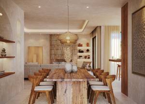 The interior of the villa is designed to offer comfort and functionality. It has three bedrooms, all with built-in wardrobes that optimize storage space. The four bathrooms are equipped with underfloor heating, ensuring optimal thermal comfort throughout the year. The kitchen is equipped with modern appliances, facilitating daily tasks and contributing to a practical and efficient lifestyle. The interior design focuses on spaciousness and brightness, creating a welcoming and elegant atmosphere.