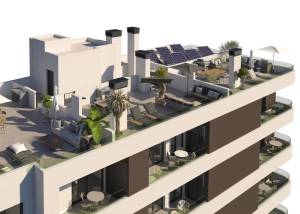 Las viviendas, que comprenden apartamentos y áticos, están diseñadas con un enfoque en la calidad y el confort. Cada unidad cuenta con suelos de gres porcelánico, que ofrecen durabilidad y un acabado elegante. La distribución incluye dos dormitorios y dos baños, proporcionando un espacio adecuado para familias o parejas. Las cocinas están equipadas con electrodomésticos modernos, y la preinstalación de aire acondicionado asegura un ambiente confortable durante todo el año. Además, las terrazas privadas son un espacio ideal para disfrutar de momentos de tranquilidad al aire libre.
