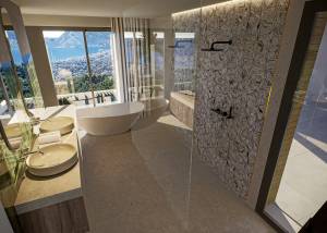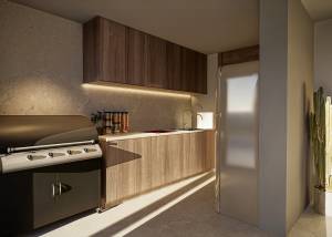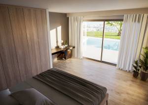El interior de la villa está diseñado con materiales de alta calidad, como suelos de gres porcelánico, que aportan un toque moderno y elegante. La vivienda cuenta con cuatro dormitorios, todos ellos con armarios empotrados, lo que ofrece un amplio espacio de almacenamiento. Los cuatro baños están equipados con acabados modernos. La cocina está equipada con electrodomésticos de última generación, y el sistema de aire acondicionado garantiza el confort en todas las estaciones. Además, la villa dispone de un videoportero para mayor seguridad y comodidad.