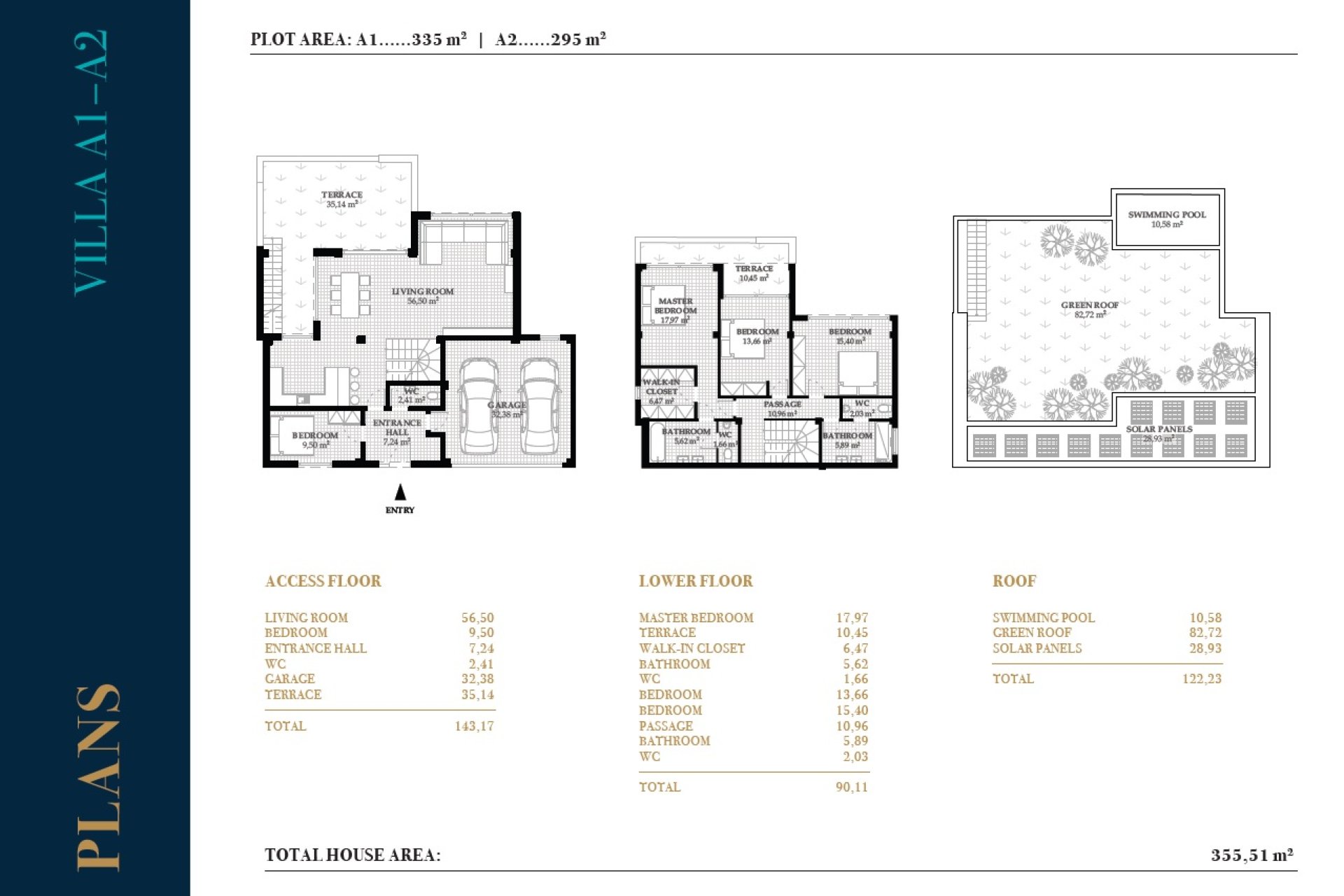 El interior de las viviendas está diseñado con un enfoque en el lujo y la comodidad. Los suelos de mármol aportan un toque de sofisticación y elegancia a cada estancia. Las propiedades cuentan con 4 dormitorios y 3 baños, ofreciendo un espacio amplio y funcional para toda la familia. Los armarios empotrados proporcionan un almacenamiento eficiente, mientras que las persianas eléctricas añaden comodidad y seguridad. El aire acondicionado garantiza un ambiente agradable durante todo el año. Además, las viviendas están equipadas con electrodomésticos de alta calidad, asegurando que cada detalle está pensado para el confort de sus residentes. La distribución incluye un garaje privado, que añade un nivel adicional de conveniencia.