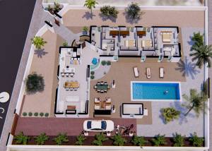 De buitenkant van deze vrijstaande woning in Alfaz del Pi is ontworpen om optimaal te genieten van het mediterrane klimaat. Het beschikt over een prachtige tuin, ideaal om te ontspannen of te genieten van buitenactiviteiten. Het terras is een perfecte plek voor diners in de open lucht of gewoon om te genieten van het uitzicht en de natuurlijke omgeving. Bovendien omvat de woning een privézwembad, wat een persoonlijke oase biedt om af te koelen tijdens de warme zomerdagen. De pergola voegt een vleugje elegantie toe en biedt schaduw, waardoor een gezellige buitenomgeving ontstaat.
