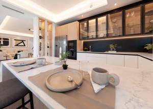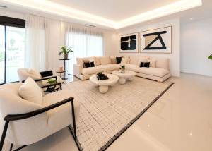 Het interieur van de woning is zorgvuldig ontworpen om comfort en stijl te bieden. De porseleinen tegelvloeren geven een moderne uitstraling en zijn gemakkelijk te onderhouden, ideaal voor dagelijks gebruik. De indeling omvat drie slaapkamers, allemaal met ingebouwde kasten die de opbergruimte optimaliseren. De twee badkamers zijn ontworpen voor functionaliteit en stijl, met hoogwaardige afwerkingen. De keuken en de woonkamer zijn bedoeld als het hart van het huis, met een open en lichte ruimte om van familietijd te genieten. De airconditioning zorgt ervoor dat elke kamer comfortabel is, ongeacht het seizoen.