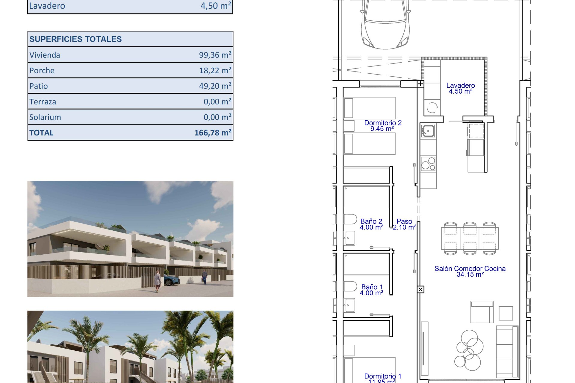 Het interieur van deze woningen is ontworpen om comfort en functionaliteit te bieden. Met opties van 2 of 3 slaapkamers en 2 badkamers is elke woning ontworpen om aan verschillende gezinsbehoeften te voldoen. De porseleinen vloertegels geven een vleugje elegantie en zijn gemakkelijk te onderhouden. De ingebouwde kasten in de slaapkamers bieden veel opbergruimte, waardoor orde en organisatie behouden blijven. De voorinstallatie van airconditioning zorgt ervoor dat elk huis koel kan blijven tijdens de warmere maanden, wat het hele jaar door een aangename sfeer biedt.