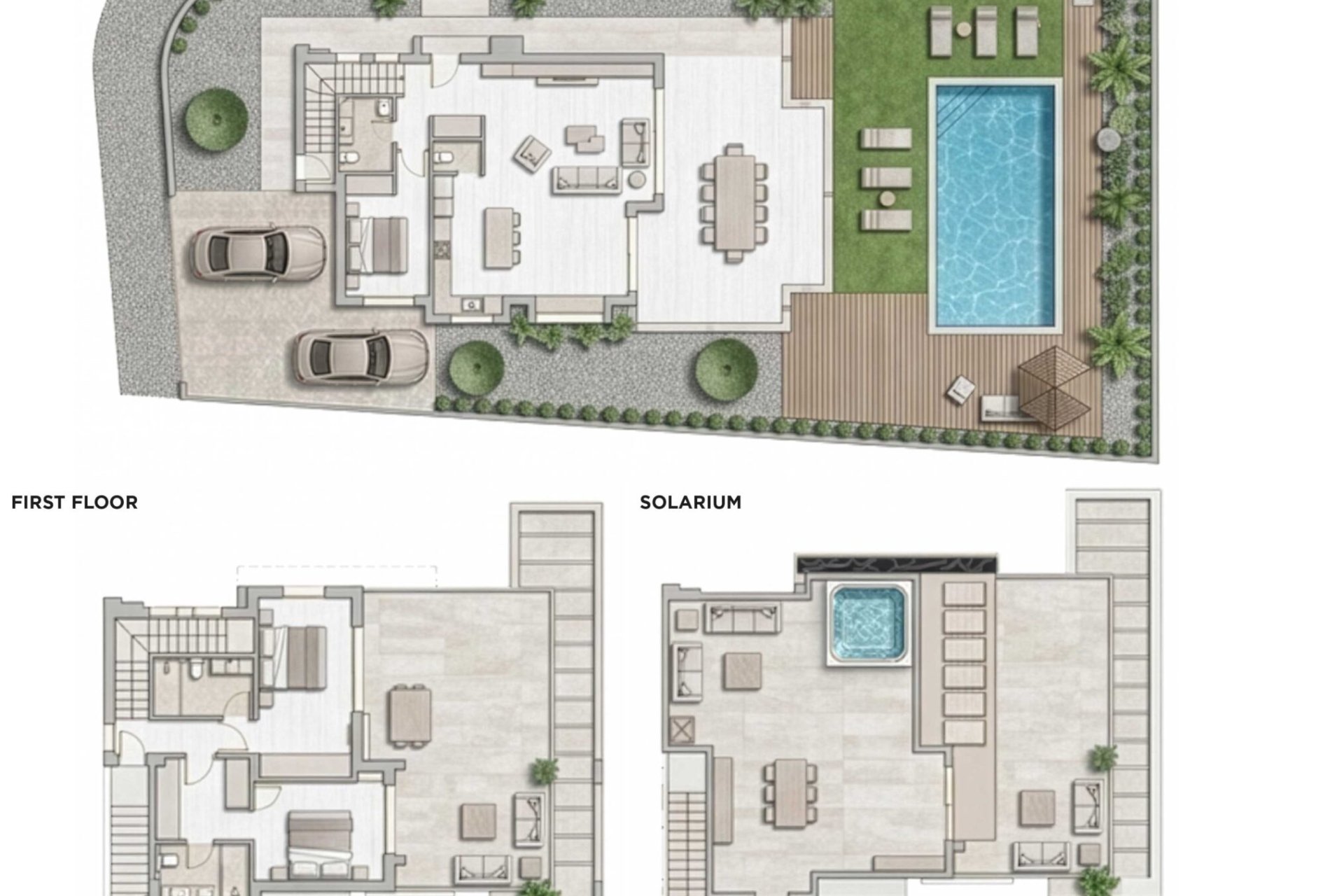 Het interieur van de woning is ontworpen om comfort en functionaliteit te maximaliseren. De drie slaapkamers zijn uitgerust met inbouwkasten, die veel opbergruimte bieden. De drie badkamers zijn ontworpen in een moderne en functionele stijl. De indeling omvat een garage, die gemak en veiligheid biedt voor het parkeren. Elk detail van het interieur is doordacht om een comfortabele en praktische woonervaring te bieden.