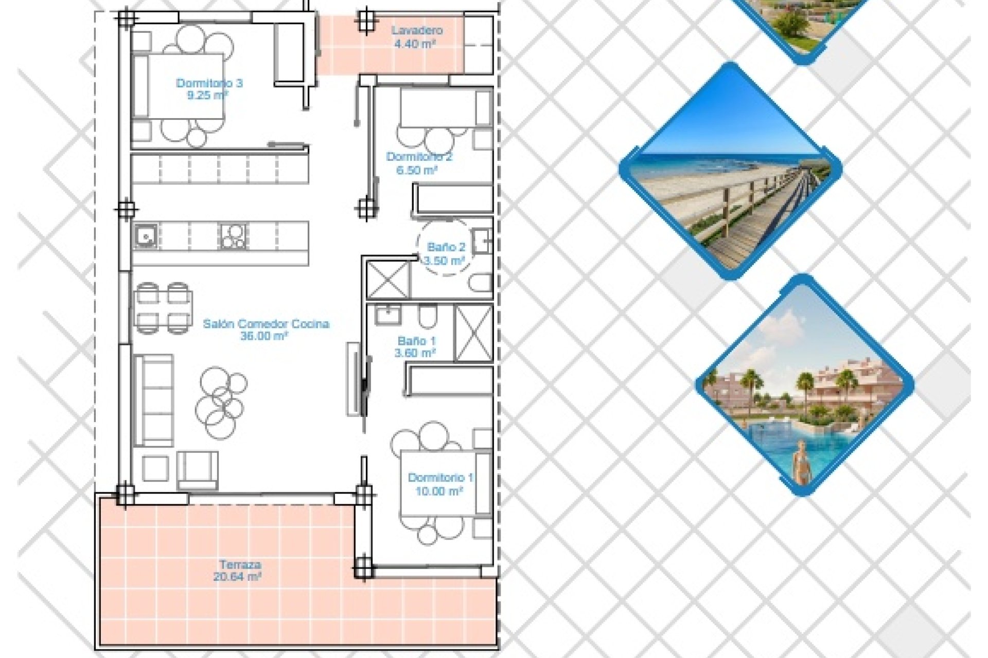 Located in the charming town of Pilar de la Horadada, this residential complex offers a variety of housing options that cater to different needs. With a total of 24 properties, future residents can choose from apartments, ground floors, bungalows with solarium, and bungalows with garden. This typological diversity ensures that every family or individual finds their ideal home in an environment that combines tranquility and accessibility. The proximity to the sea, just 2 km away, allows for enjoying the sea breeze and pleasant walks along the coast. Additionally, the nearest airport is 48 km away, facilitating international and national travel. The strategic location of this residential in Pilar de la Horadada makes it an attractive option for those seeking a balance between comfort and quality of life.