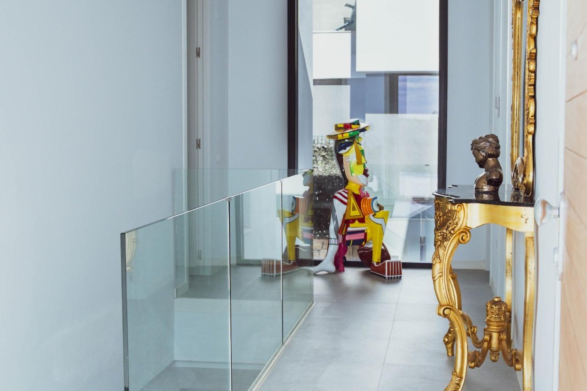 Exclusive contemporary design villa featuring stunning floor-to-ceiling windows that frame panoramic sea views and fill every room with natural light. The elegant living room opens to a spacious outdoor terrace, highlighted by a spectacular infinity pool with open sea views, creating a seamless transition between indoor and outdoor spaces, providing a unique setting to enjoy the Mediterranean lifestyle.~~The residence includes a fully integrated modern American kitchen, as well as complete wellness and leisure areas including a gym, sauna, and cinema room. Additionally, it features a separate laundry room, a large closed garage, and a security camera system.~~Equipped with a home automation system, it allows for efficient control of blinds, lighting, and climate, adding comfort and cutting-edge technology.~~The bathrooms incorporate designer sanitary ware, adding a touch of sophistication and quality in every detail. Outside, a well-kept garden with Mediterranean trees, such as olive trees and palm trees, enhances the exclusive character of the property.~~The upper floor houses the main area, with a bright living-dining room with an open kitchen, a guest toilet, and three bedrooms, all with en-suite bathrooms, with the master bedroom featuring a walk-in closet. This floor also includes an office and access to the closed garage with capacity for two vehicles.~~The ground floor houses the leisure and service areas, with a gym, sauna, cinema room, and laundry.~~As an added value, the property features an independent apartment on the ground floor, ideal for guests or staff, which includes a living-dining room and a fully equipped American kitchen with a dishwasher, oven, microwave, induction cooktop, extractor hood, refrigerator, etc., as well as two bedrooms and two bathrooms, one of them en suite.~~A unique property that combines design, comfort, technology, security, and privacy in a privileged location with sea views.~~UPPER FLOOR:~- Living-dining room with open kitchen.~- Guest toilet.~- Bedroom 1 with en-suite bathroom and walk-in closet.~- Bedroom 2 with en-suite bathroom.~- Bedroom 3 with en-suite bathroom.~- Office.~- Closed garage for 2 cars.~~GROUND FLOOR:~- Gym.~- Cinema room.~- Laundry.~- Bathroom.~~GROUND FLOOR - INDEPENDENT APARTMENT:~- Living-dining room with fully equipped American kitchen.~- Bedroom with en-suite bathroom.~- Bedroom 2.~- Bathroom.