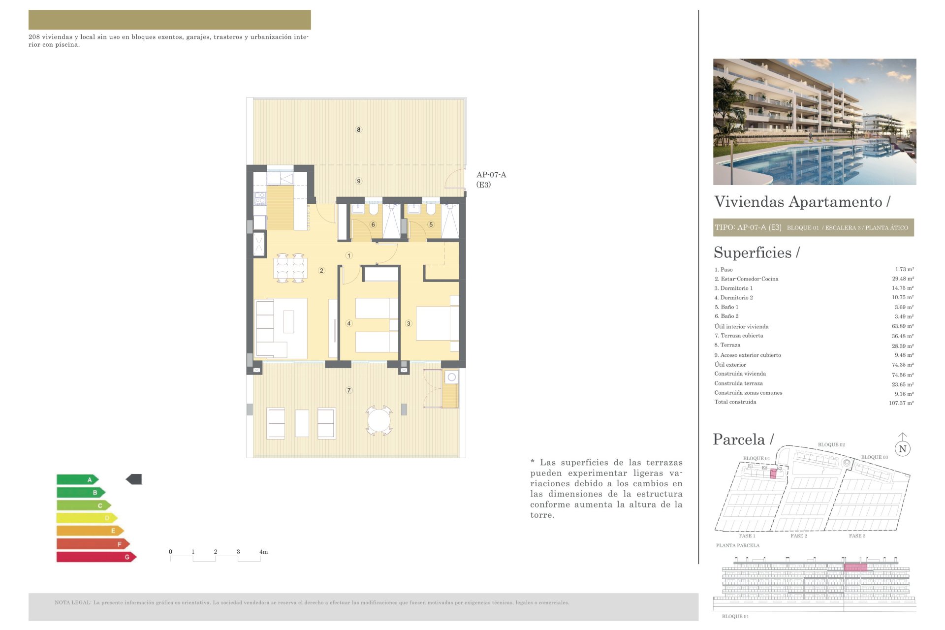 Located in the charming town of Mutxamel, this residential complex offers a variety of housing options that cater to different needs and lifestyles. With a total of 123 properties, future residents can choose from apartments, ground floors, and penthouses, all designed to maximize comfort and functionality. The location is ideal for those looking to enjoy sea views, providing a serene and relaxing environment. Additionally, the proximity to the airport, just 29.246 km away, facilitates travel for frequent flyers.