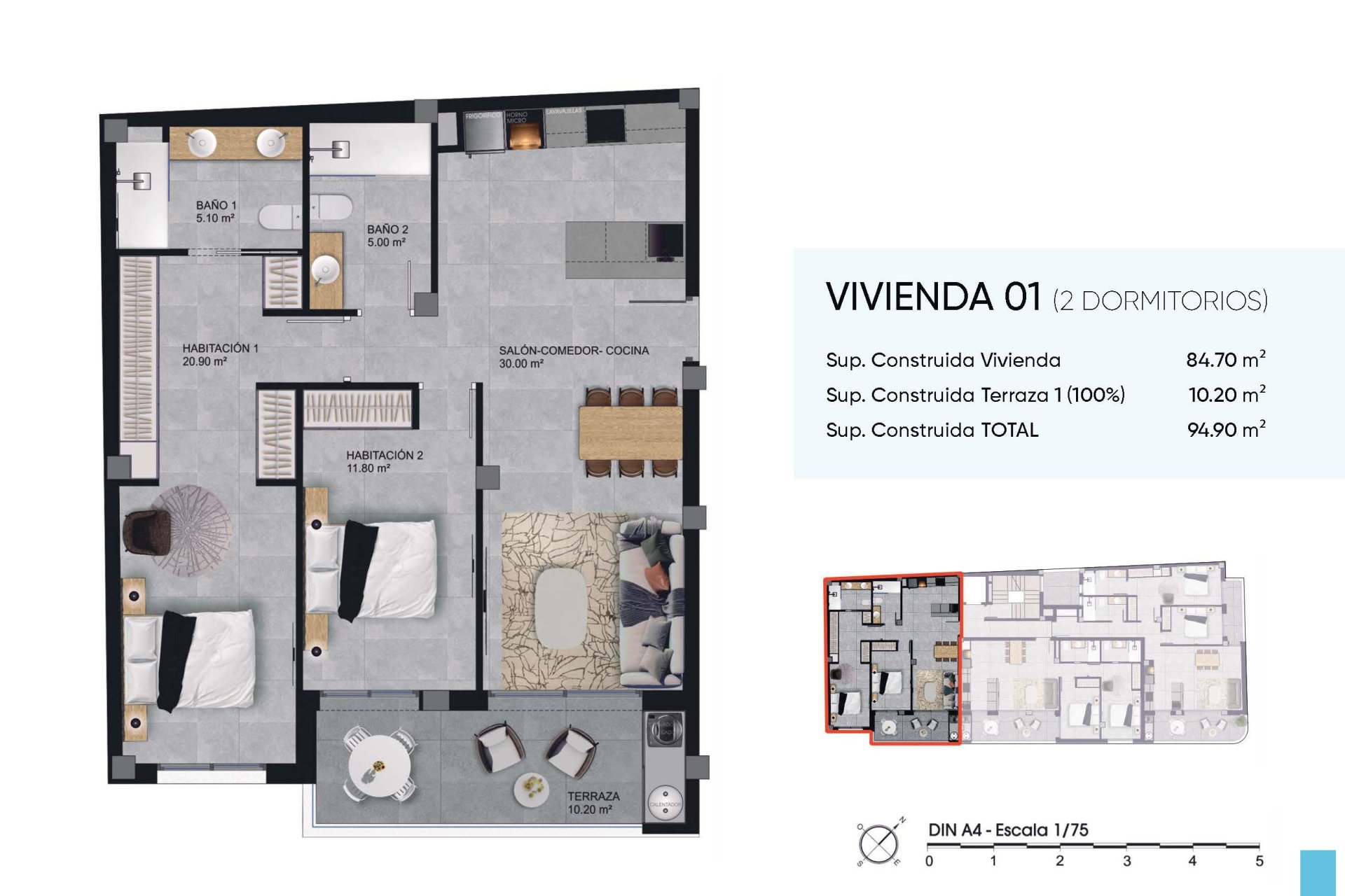 Located in the charming town of Santa Pola, this residential complex offers an exclusive selection of 14 properties, including apartments and penthouses. Designed for those seeking a comfortable and modern lifestyle, each home has been carefully planned to maximize comfort and functionality. The location is unbeatable, just 1 km from the sea, allowing you to enjoy the sea breeze and spectacular views. Additionally, the airport is conveniently located 14 km away, facilitating travel for frequent flyers.