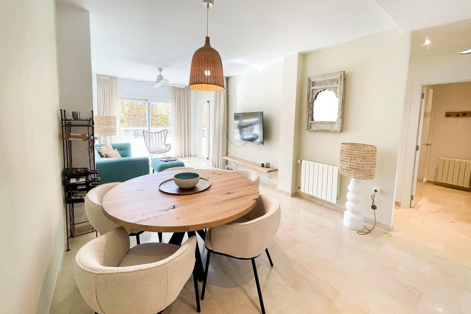 Fantastic and completely renovated and modern apartment for sale in the heart of Albir, yet in quiet surroundings in an attractive area of the city centre, right next to the golf course. The apartment consists of a bright and spacious living room, a modern and practical kitchen, three bedrooms, two bathrooms (of which the master bedroom has an en suite bathroom) and a large, south-facing terrace with beautiful views of the golf course and the mountains of Sierra Helada. The apartment is very bright and welcoming, and has been renovated using top quality materials. The apartment also includes a closed garage and a very spacious storage room in the basement of the building. Beautiful and well-kept communal garden areas with swimming pool. Only 3 minutes’ walk to all amenities, and 5 minutes’ walk to the beach in Albir.